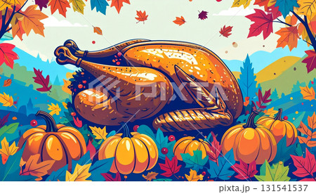 感恩節插圖:火雞和南瓜慶祝秋天的豐收