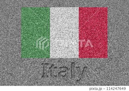 石板上畫著義大利國旗,上面刻著「義大利」字樣