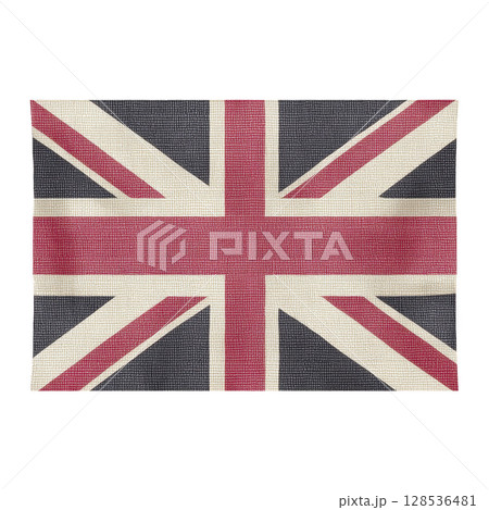Image shows textured Union Jack flag with woven appearance, featuring iconic red, white, and blue colors. flag is displayed on transparency background, emphasizing its design