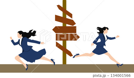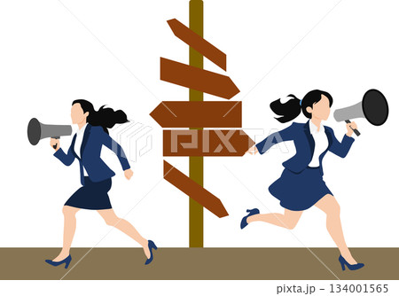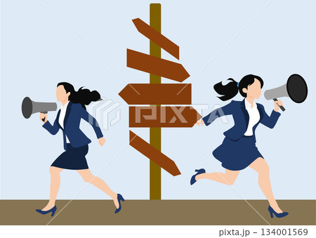 插圖:一位40多歲的微笑的女性手持一面寫有「進球」字樣的旗幟(僅線條畫)