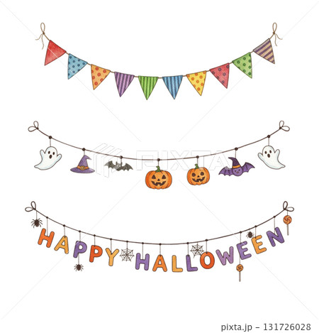 一組星形、三角形和方形花環插圖_黃色、紫色和橙色