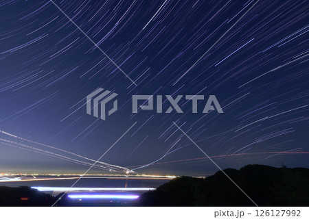 從神奈川縣川崎市麻生區大禪寺見晴公園以超廣角拍攝的春季西側夜景(大禪寺西、白山、背景獵戶座等)