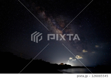 日本岡山縣備前市橛島上空漂浮著美麗的星空