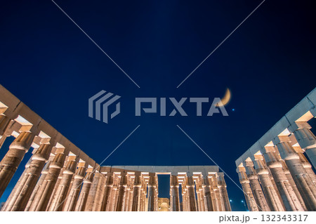 Night Sky Over Luxor Temple Egypt Crescent Moon and Venus Conjunction.
