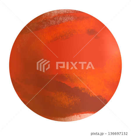 火星的水彩插圖|太陽系第四顆行星,被稱為紅色星球