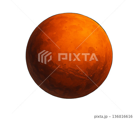 A stylized children's illustration of the Red Planet in watercolor and pencil. Isolated illustration for children's textile design and space-themed parties.
