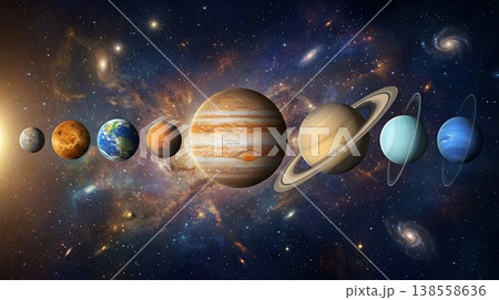 Vibrant planets in space solar system cosmic background astronomy illustration