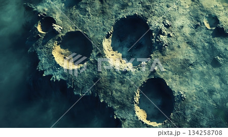 Dramatic Lunar Landscape: Craters Seen From Above in a Teal Color Palette