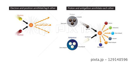 illustration of chemistry and physics, Electron and positron annihilate each other and Proton and antiproton annihilate each other, Products from matter, antimatter Collisions