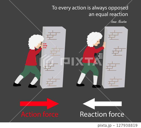 illustration of physics, law of motion, Law of Action-Reaction, Newton's third law, Law of inertia, Compression force, showing action reaction force direction example