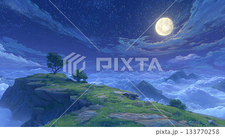 星空下,月光照亮了懸崖