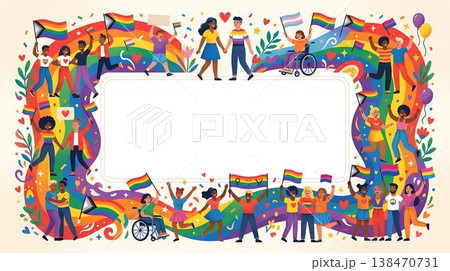 背景插圖描繪了一個彩虹色的心形氣球漂浮在空中。