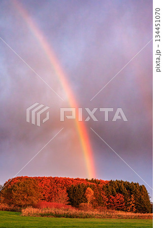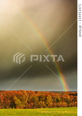 秋色斑斕的森林和美麗的彩虹