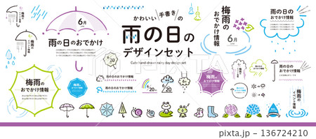 可愛的手寫體!雨季設計素材包(邊框、插圖、標題)/紫色