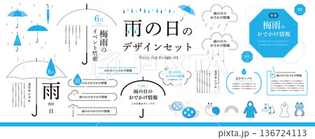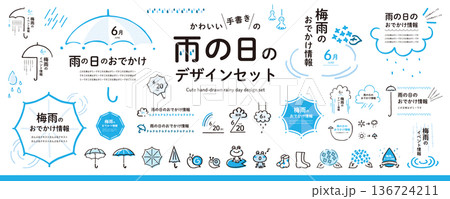 可愛的手寫體!雨季設計素材包(邊框、插圖、標題)/ 藍色