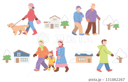 冬季外出的人們的插圖集