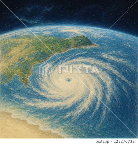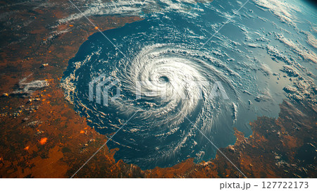 Vast swirling storm system over ocean, showcasing environmental impact and intensity