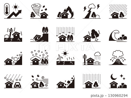 Icon set collection of natural disaster illustration from wind storm wildfire drought flood volcano eruption landslide