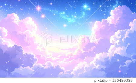 Dreamy magical pastel sky background with soft pink cloud and glowing star at night. beautiful, serene view of celestial light and scenery