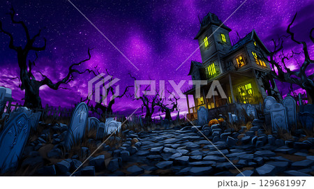 令人毛骨悚然的萬聖節房屋和墓地場景
