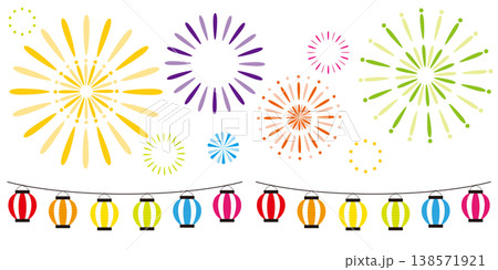 五彩繽紛的煙火插圖(夏日祭典、夜空、活動)