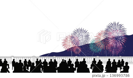 煙火節 看台上看到的煙火 剪影插圖 夏季節日夜景素材