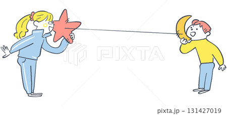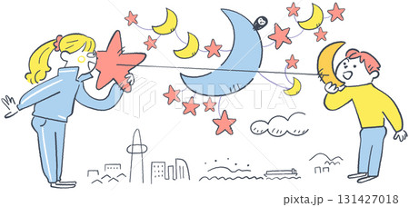 星星和月亮連結的對話:女輔導員和男孩的插圖
