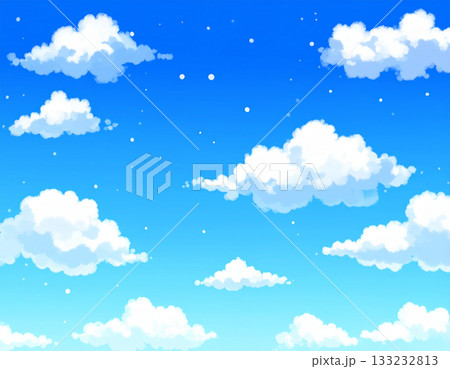 Bright cartoon cloudscape vector illustration with seamless blue sky pattern