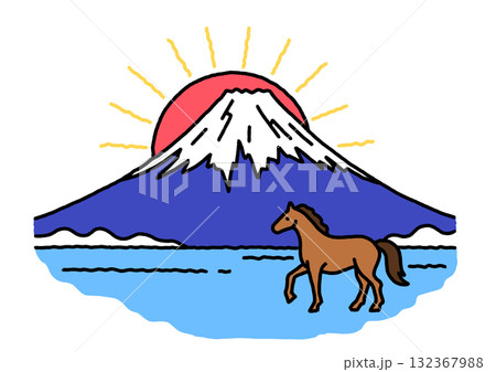 日本現代插畫,描繪了一年中的第一個日出和富士山