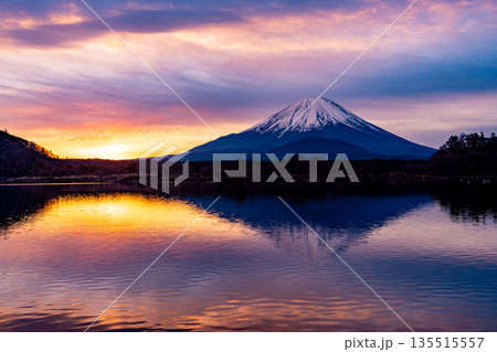 [山梨縣]精進湖美麗的日出(8縷)和富士山