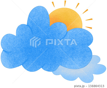 水彩插畫,描繪了雲和太陽,手繪風格,以天空和天氣為主題。