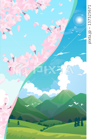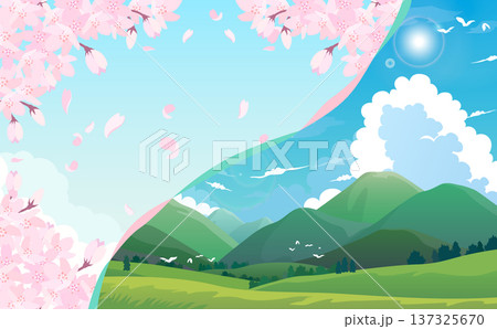 春日櫻花盛開,夏日山脈環繞_橫向