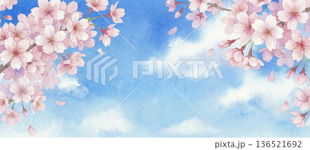 櫻花與藍天的水彩背景素材
