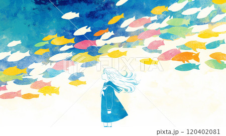 [風景/壁紙] 魚和女孩
