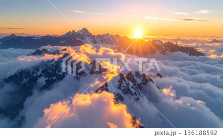 【AI生成影像】世界壯麗的戶外風光:著名山峰和雲海在晨曦中熠熠生輝