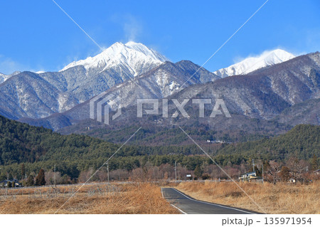 八嶽山脈、橫嶽主峰和富士山的冬季