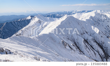 冬季從八嶽山脈和橫嶽山脈的橫斷道上看到的主山脊線
