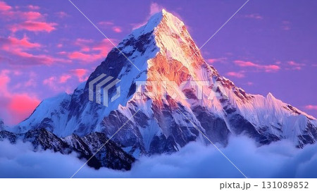 Majestic Mountain Peak Bathed in Golden Light with Pink Clouds a