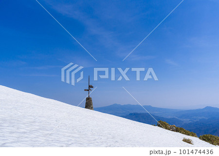 冬天的 Kumotori 山 Odawa 的標誌和長凳