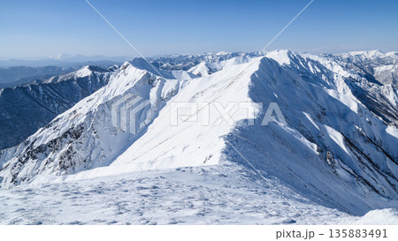 冬季從八嶽山脈赤嶽山頂眺望權現岳、南阿爾卑斯山及中央阿爾卑斯山