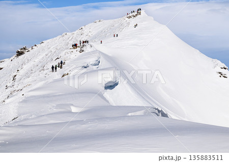 登山者在嚴冬時節沿著谷川山天神嶺行走(雪山登山)