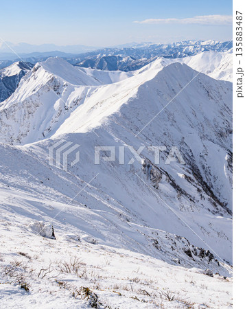 冬季從八嶽山脈和橫嶽山脈的橫斷道上看到的主山脊線