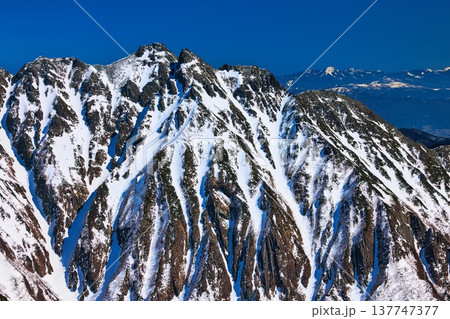 冬季從八嶽山脈赤嶽山頂眺望權現岳、南阿爾卑斯山及中央阿爾卑斯山