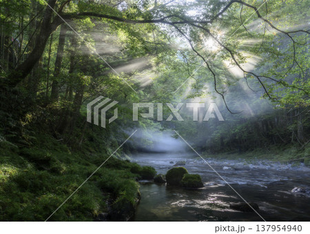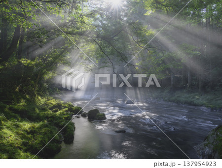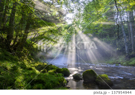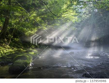 美麗光線的菊池溪谷(熊本縣菊池市)