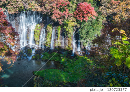 靜岡縣富士宮市被秋葉包圍的白絲瀑布