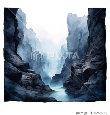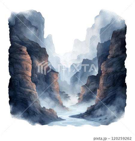 A Serene River Flowing Through a Misty Canyon