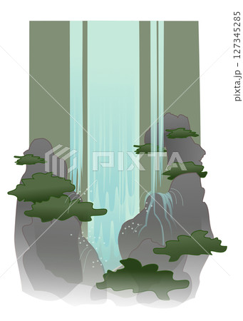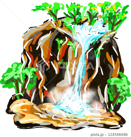 Waterfall streaming down a steep cliff cartoon art illustration