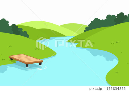 River Day Social Media Background Flat Cartoon Hand Drawn Templates Illustration