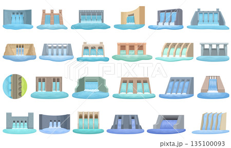 Hydroelectric Power Dam Plant Icon. 3D Rendering.