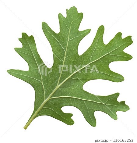 A vibrant green oak leaf with distinct lobes and visible veins, showcasing intricate patterns of nature. leaf texture and shape highlight its natural beauty